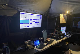 In a remote campsite and basecamp, during a field day, you might walk into one of our camps and see a tower 30ft in the air, with antennas on it. You will notice that, for the last mile or so of the hike you began to have cell service again! And when you enter our camp, your smartphone comes alive! That's because we use special equipment to pull in cellular services from distant towers too far for your personal cell to reach. This provides us with Internet access, and cellular telephone service, and with other equipment, and the miracle of mesh networking, each tent can have a computer that is connected via a wireless network to the other tents in our camp. We can browse the Internet, and share and transfer files back and forth with each other. And on our desk in each tent, we can have a telephone, with dialtones, and calling service, right there in the middle of nowhere! Our handheld radios will work for miles and miles around us, and we can all talk together, because of that tower, and because of the repeaters and their antennas connected on it! We have paging devices, full cellular service, long-range 2-way radio service, and worldwide digital 2-way radio service, using our digital radios. And of course, the HF/shortwave radios can reach just about anywhere in the world! These guys may have flatscreen TV's or monitors, in their tents, a telephone, a printer for hardcopy reports, radio equipment, and the power to charge your devices at the end of the day!